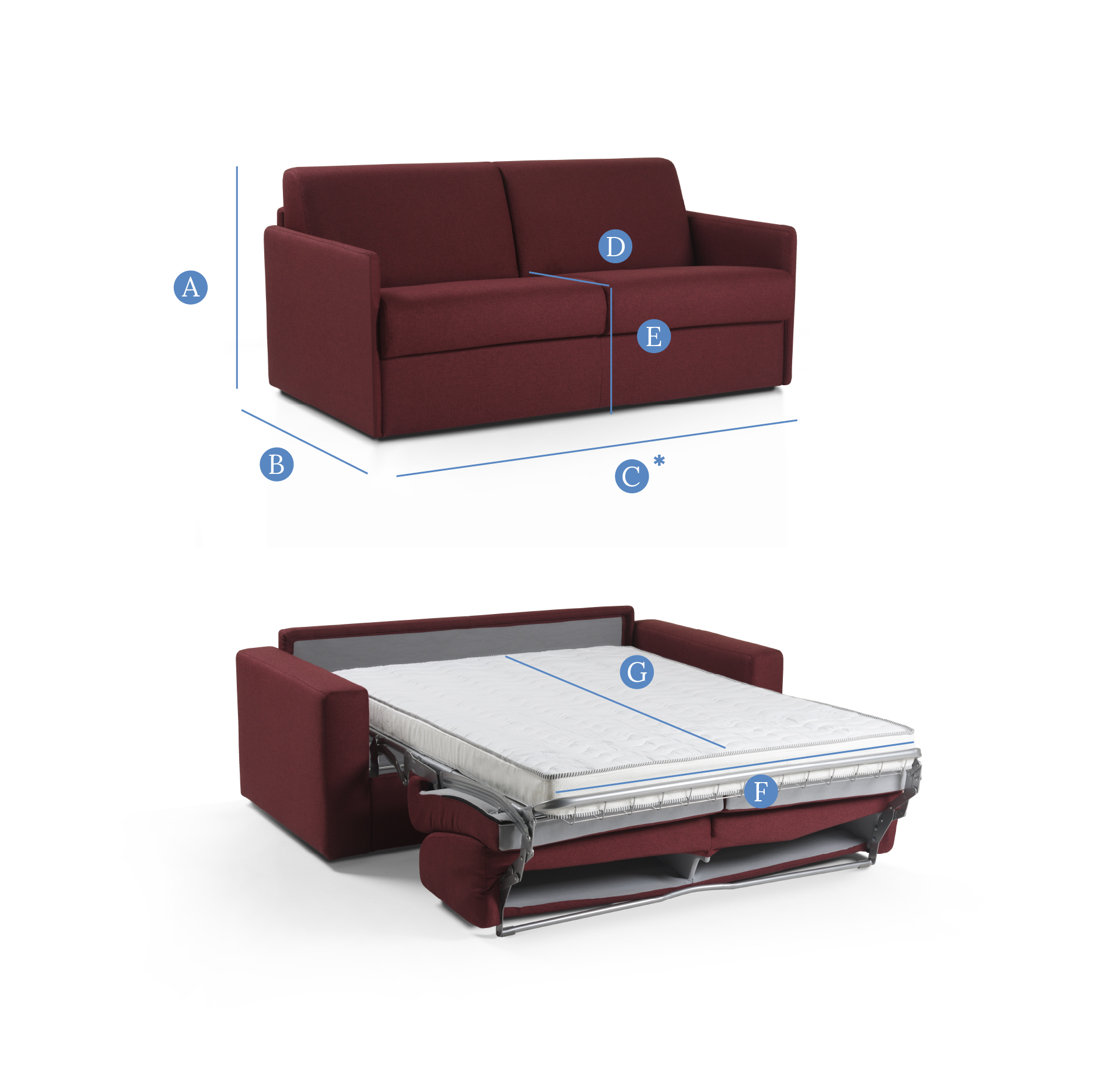 2 locuri | A = 85cm | B = 98cm | C* = 144cm | D = 56cm | E = 48cm | F = 120cm | G = 190cm |