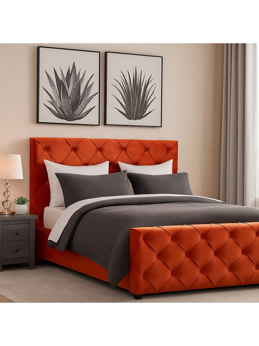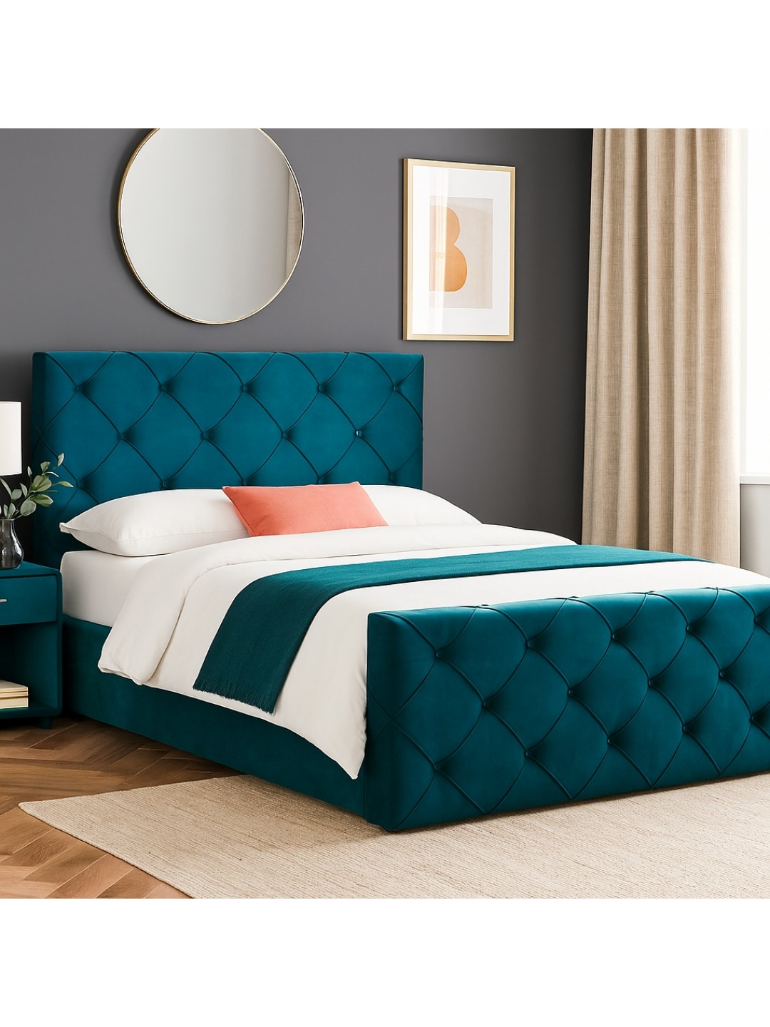 Tăblia capului și cea de la picioare sunt decorate cu un model în romburi, ce oferă o textură vizuală spectaculoasă. Aceste forme adaugă profunzime, rafinament și o notă de lux, transformând patul într-o piesă decorativă, nu doar funcțională.