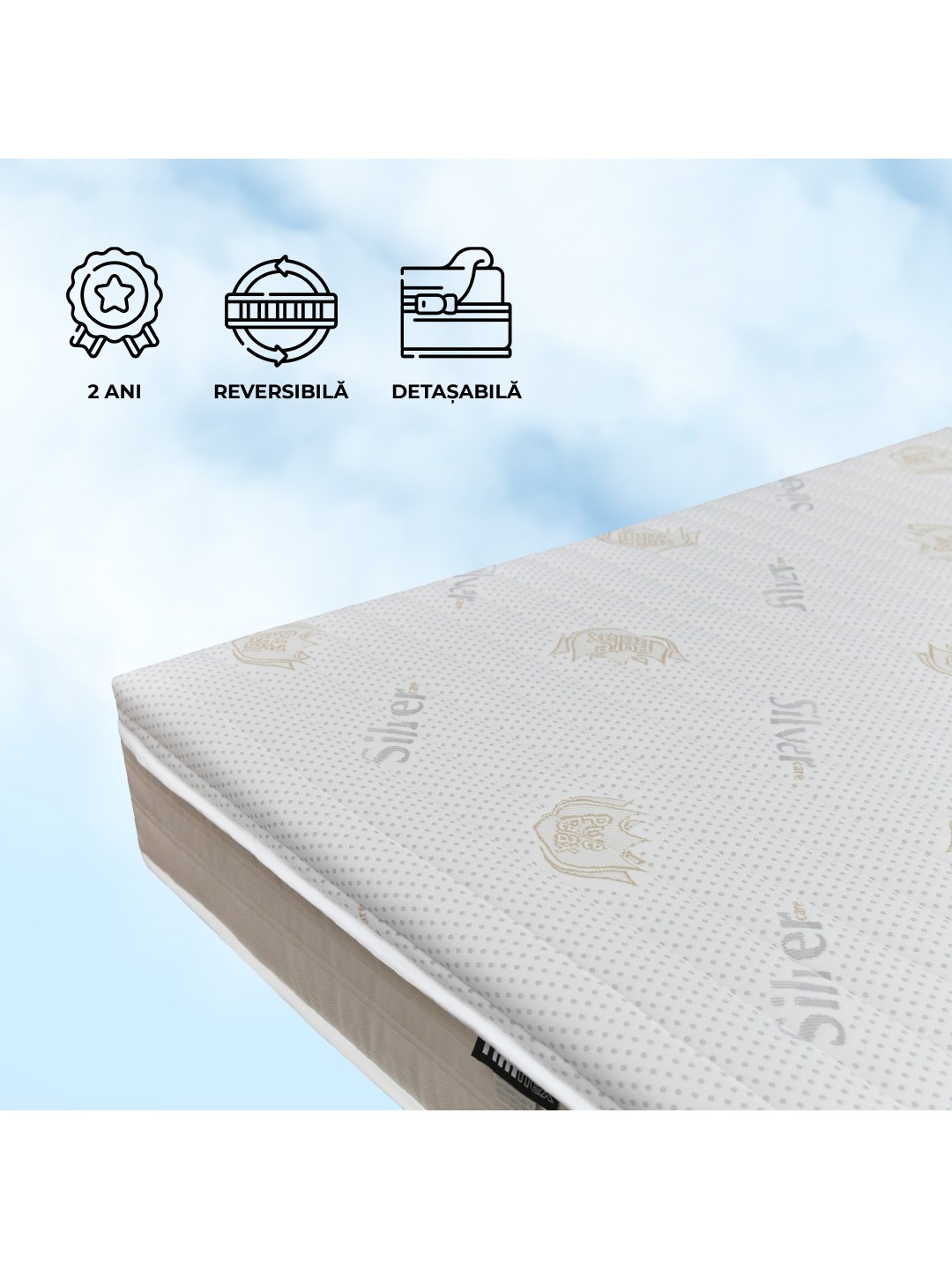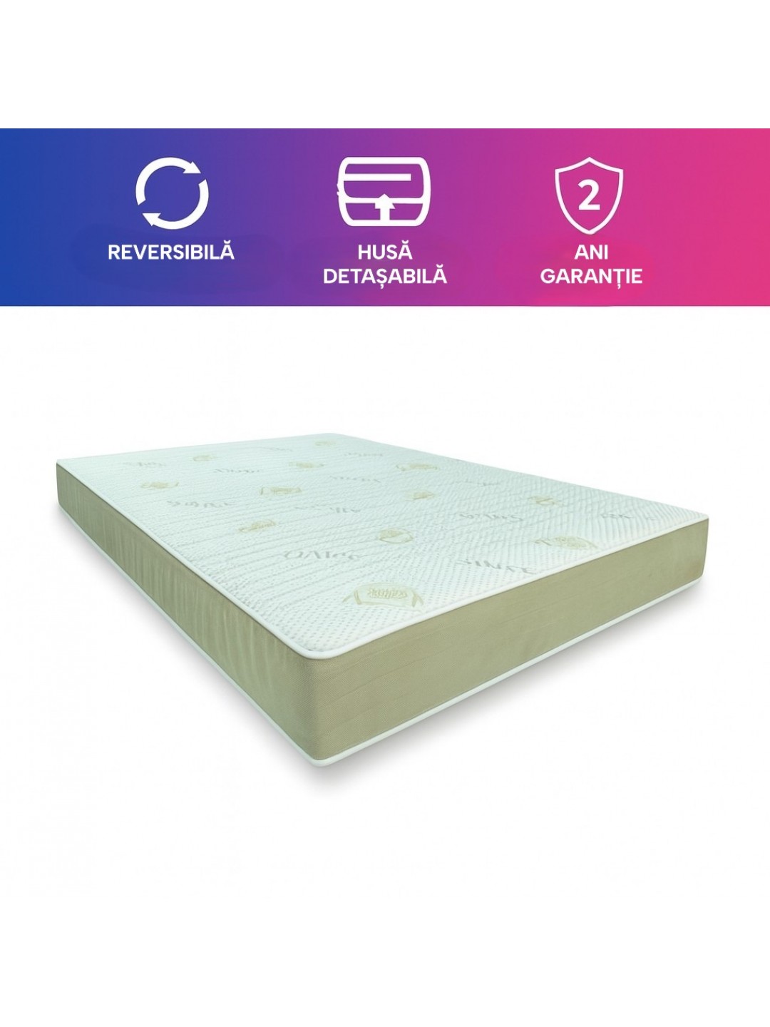 Deși este o saltea mai fermă, stratul superior din spumă superortopedică contribuie la un confort sporit, reducând punctele de presiune și distribuind greutatea uniform. Această structură favorizează o poziție naturală în timpul somnului și previne durerile de spate cauzate de saltelele prea moi sau instabile.