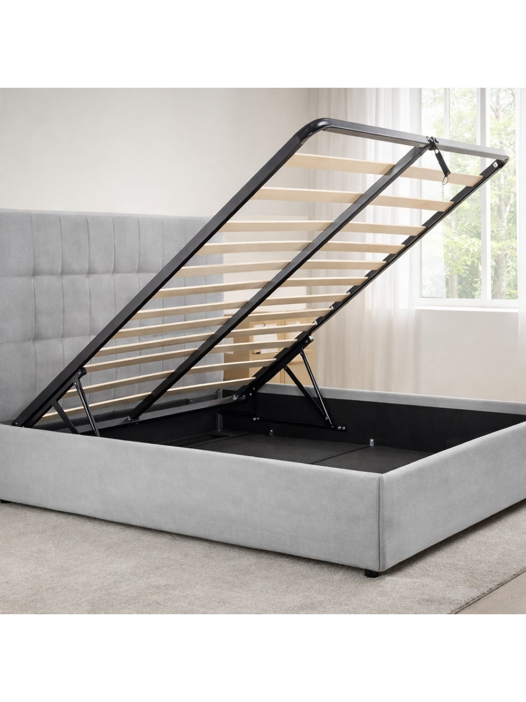 Sub somieră se află un compartiment spațios de depozitare, perfect pentru obiecte textile sau accesorii de sezon. Somiera rabatabilă, cu pistoane pe gaz, a patului NOTTURNO se ridică ușor și oferă acces rapid și sigur – ideal pentru un dormitor mereu organizat.